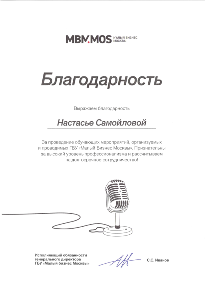 - Спикер Малый бизнес Москвы, бизнес академии для руководителей и специалистов и площадки МСП