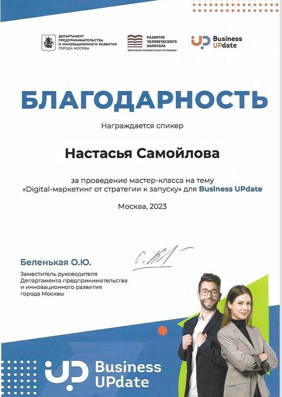 Ответы на некоторые вопросы по бизнесу и маркетингу, а также методички и чек-листы можно найти в экспертном канале телеграмм Настасья Самойлова или в Вконтакте